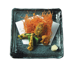 動靜反差與流轉 禪風生活 入淨食 ◎記者李碧華/文.圖 |2007.10.14 語音朗讀 558觀看次 字級 大 中 小 多數人認為素食起源於印度,SHOJIN二字是梵文中VYRIA一詞的日文翻譯,意思是「存善遠惡」,素食料理專家楊忠憲說,素食烹飪是和佛陀的教導保持嚴格一致的。西元13世紀,禪宗中曹洞宗派的創始人道元禪師正式確立了日本素食烹飪──精進料理。楊忠憲指出,日本曾經是一個素食主義盛行的國度,從奈良時期到明治維新的1200年間,日本人民的膳食以大米為主食,同時吃豆類和蔬菜,在這樣的環境和條件下,日本人發展了一種素食烹飪法,精進料,一種日本本土的烹飪法。日本料理以保留食物的原味為前提,使用當季新鮮食材,運用五味、五色、五法料理原則,用關心的態度烹調出細膩且著重自然的原味的料理。以此概念創立的「黑仙居」,店名總讓人好奇,黑的意象有漆黑、隱密、神秘、莊嚴、墨等意思。採黑色系與木質設計,視覺氣氛更呈現禪豐景象,仙者,經修煉後長生不老且脫俗之人;白,西方色也。是亮、明、日、潔淨之感,表達料理的態度與服務,以人性切入無限延伸。居的單字解釋有住所、住宅、坐下等意,黑與仙;黑與白,有明與暗、明亮與漆黑、濃與淡、陰與陽。天地間,孤陰不生;獨陽不長,萬物相生相剋,意指眾生與所有人。「黑仙居」以深厚的日本料理功夫,品嘗到新鮮、自然又健康的蔬食料理。《主編推薦》●燒物木瓜起司燒/220元材料:宛豆仁+玉米+紅羅蔔+木瓜+起司口感:新鮮木瓜去籽後,加上內料加以焗烤,鮮甜的木瓜碰上濃郁的起司,組合成夢幻的好滋味,濃濃奶香中帶著木瓜的鮮甜,相輔相成形成絕妙組合。●蕃茄天使冷麵定食/180 元材料:蕃茄+九層塔碎+風乾蕃茄+檸檬皮+冷壓橄欖油口感:地中海式的油醋加上秋葵,使得地中海式的冷麵加上日式精神後,油然而生的一種新結合。天使髮的細膩口感,加上酸甜穠纖合度的油醋,在口中呈現酸甜細緻、清爽不油膩的美妙滋味。●野菇辣味噌鍋定食/200元材料:鴻喜菇+美白菇+香菇絲+洋菇片粒+杏鮑菇+秀珍菇+滑子菇+凍豆腐+山春菊+雞冠海藻口感:日式的味噌湯加上自製的辣醬,口味相當微妙,在味噌鍋中可加上海藻與雞冠海藻,其中滑溜的口感令人驚艷。●牛蒡海老定食/220元材料:青椒+芋頭+蕃薯+牛蒡+山藥牛蒡+山藥口感:以繁複手法與日本料理功夫呈現素食料理。吃起來酥脆不油膩,熱熱呼呼的天婦羅沾上以昆布為主調製的特別醬汁,當日式麵衣吸上滿滿醬汁入口那一刻,酥脆、飽滿,視覺很吸引人。●沙拉和風野菜沙拉/150元材料:小黃瓜+紅蕃茄+蒟蒻+黃秋葵+黃玉米+紅蘿蔔+雞冠海藻+鮮香菇半朵+青花菜+美生菜+貝芽菜口感:將小黃瓜以等距切成花型,使它更加入味與青脆。醬汁上採日式芥子醬加上昆布醬油調味,清爽酸甜的滋味,更顯現出新鮮蔬果的天然原味。●壽司鮮果加州卷/160元材料:白芝麻+沙拉醬+小黃瓜絲酪梨口感:酸甜適中的醋飯是功夫的表現,捲上滑順的酪梨與特製醬料,入口後落離與醋飯成了最好比例的混合,滑順爽口。●揚物野菜天婦羅/150元材料:牛蒡絲+地瓜+芋頭+海苔包裹蘆筍+青椒+茄子口感:以優秀的日本料理功夫炸出天覆羅,酥脆爽不油膩。將白蘿蔔泥加入特製天覆羅醬汁攪拌,以天覆羅沾醬汁實用。黑仙居蔬果創作料理地址:台北市中山區農安街194號電話:(02)25006252營業時間:11:30-14:30 、 17:30-21:30 前一篇文章 【素食達人】楊忠憲 堅定素食料理這條路 下一篇文章 認識日本料理 熱門新聞 01福山寺贈吉祥公益米 送暖彰化社區2026.01.1202寬頻與光纖2026.01.0903搶太空資源 陸申報20萬顆衛星2026.01.1204【台灣媽媽在荷蘭】體驗阿爾卑斯山冬季魅力2026.01.1205悍將、雄鷹補戰力 拚闖季後賽2026.01.0906【寰宇采風】托雷多古城:繁華過後魅力依舊2026.01.0907從飲食到志怪 7作品入選寫台北書單2026.01.1208雕塑家攜手社區 共護大自然 2026.01.1109遭刑事調查 Fed主席鮑爾痛批恐嚇2026.01.1310【生活快門】女王的書店2026.01.12 訂閱電子報 台北市 天氣預報 台灣一週天氣預報 相關報導 【蔬活日常】涼拌菜其實不簡單【時令滋味】冬收曳翠姿 賀節好食芥【樂活蔬食】一碗南瓜黑豆湯找回甘美滋味【賣菜郎說菜經】好霸道的皇帝豆【節氣養生】小寒 橄欖酸甜鹹 潤肺解毒【點心時間】童年的幸福小餅