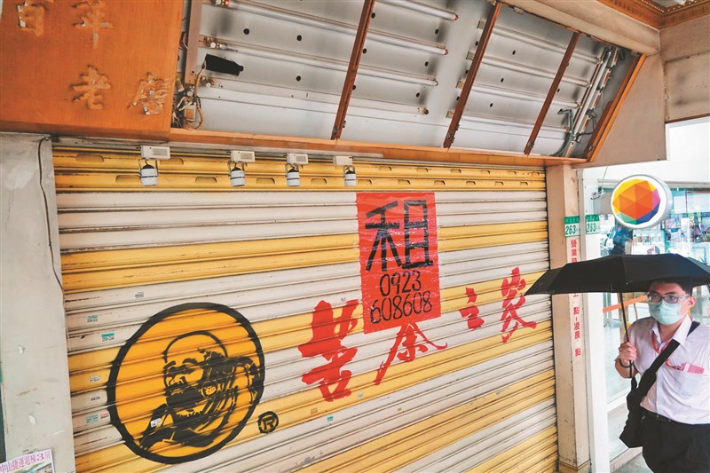 國內經濟因疫情受重創,中央擬發五倍券振興消費,但許多餐飲業者早已拉下鐵門拆掉招牌,招牌一旁還留著百年老店的痕跡。圖/林伯東