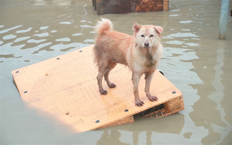 南部地區連日大雨,位在台南永康的「黃媽媽狗園」地勢低窪,園區遭大水重創,許多狗狗泡在泥水裡,部分飼料也被沖失,處境艱辛。