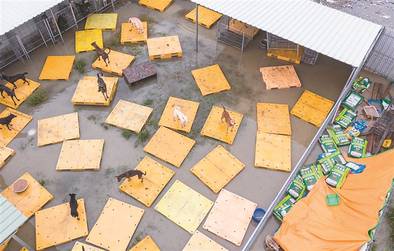 台灣動物緊急救援小組攝影團隊近期挺進淹水園區,用空拍機記錄「黃媽媽狗園」淹水實況,引起網友關注。