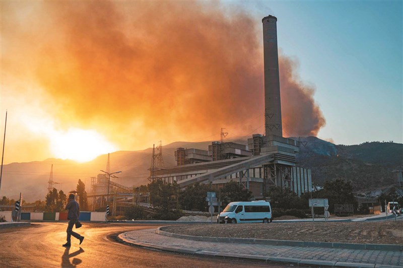 土耳其救援人員使用直升機和水砲,試圖讓發電廠免於被致命的野火吞沒。圖╱法新社