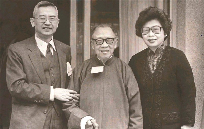 余英時(左起)與錢穆及錢穆太太胡美琦合照。圖/資料照片
