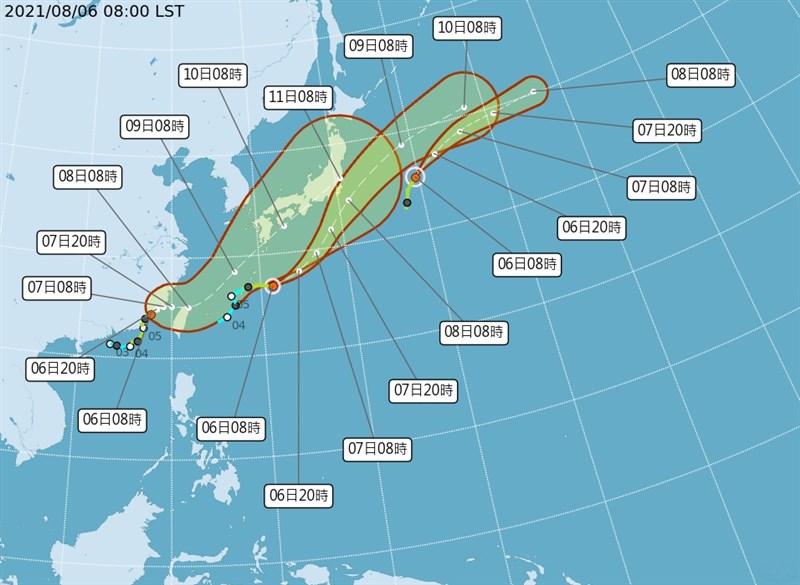 災防辦強調,盧碧颱風已於今天上午減弱為熱帶性低氣壓,後續受台灣東側10號颱風銀河影響,路徑將轉向東北東,預計明天下午出海,8日凌晨接近台灣西北方近海,再次增強為颱風,且不排除登陸可能。