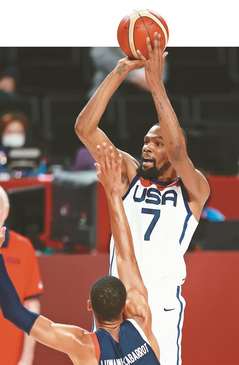 【記者鍾亞芳綜合報導】東京奧運昨天進行男籃金牌戰,美國隊在杜蘭特(Kevin Durant)29分的帶領下,以87:82擊敗法國隊、完成4連霸,杜蘭特取得個人第3面金牌、追平隊史紀錄,3屆奧運共攻下435分,也刷新隊史紀錄。