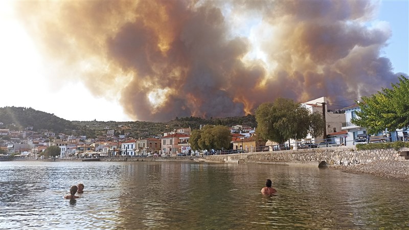 希臘第二大島埃維亞島的山火8日持續肆虐,數千名居民和遊客緊急撤離。圖/新華社