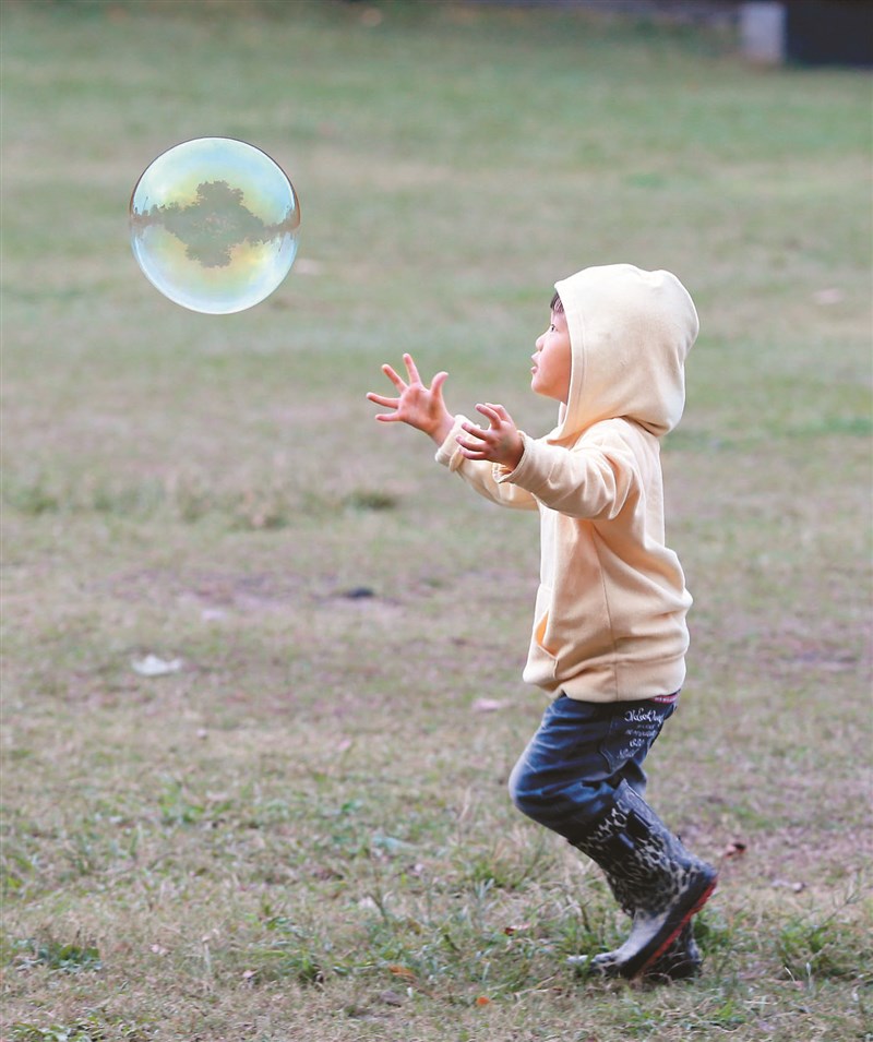 小男孩在戶外玩泡泡。圖/資料照片