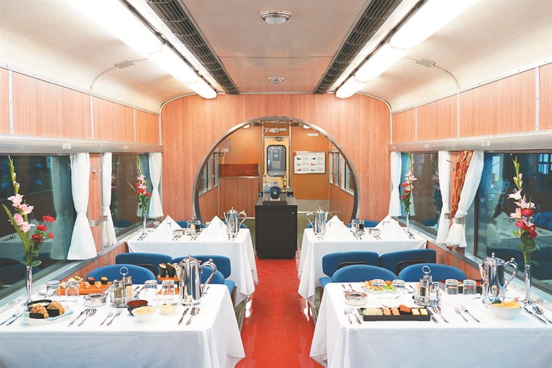 國家鐵道博物館籌備處重現DC32751號的觀光號餐車內裝,恢復月洞門設計及餐車設備。圖/國家鐵道博物館籌備處提供