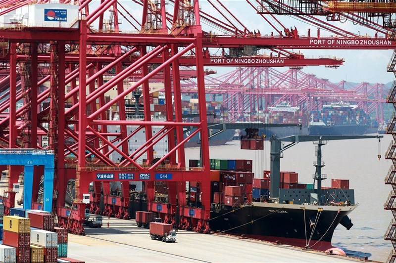 中國寧波舟山港(圖)一名貨櫃碼頭工人11日確診後,梅山港區採取封閉管控暫停所有貨櫃進儲提領。圖/中央社