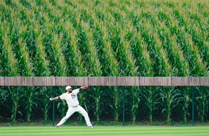 賽前白襪隊投手在玉米田旁熱身。圖/美聯社
