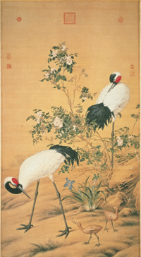 花陰雙鶴 清‧郎世寧/圖 國立故宮博物院/文 |2007.10.15 語音朗讀 264觀看次 字級 大 中 小 在粉色薔薇勝盛開的一角,立有兩隻丹頂鶴。一隻正在回首理毛,另一隻則略微回首,似乎正要看顧兩隻尚未有羽毛的雛鶴。描繪得栩栩如生的鶴羽,不僅有毛羽細節,也有光澤效果,這樣的光澤處理特質,也同樣表現於畫中植物,不論薔薇、鳶尾花,皆有細膩描繪。此畫所描寫的雛鶴,並非常見的繪畫題材,乾隆皇帝曾有詩文描寫雛鶴提到:「鶴雛纔出殼,便具凌雲慨」,從畫中雛鶴站立挺直的姿態或許可為呼應。款:臣郎世寧敬繪。鈐印一。恭畫。 前一篇文章 《星雲說喻畫人生》 ◎星雲大師/文‧阿虫/圖 下一篇文章 《窗下思潮》人心的地圖 熱門新聞 01佛大義煮團 熱食暖心馳援光復2025.10.0102【世界行旅】煙火˙人間 2025.10.0103壓力會破壞大腦防線2025.10.0104大腦基本運算單元2025.10.0105台灣好行 套票送好禮2025.10.0106旗山感念師恩茶話會 以法傳心2025.10.0107全球AI算力 美奪冠、陸第22025.10.0108【詩】徒手抓一把蟬聲 2025.10.0109鼓勵年長女性 66歲嬤選環球小姐2025.10.0110印尼學校倒塌 3死近80傷 38人受困2025.10.01 訂閱電子報 台北市 天氣預報 台灣一週天氣預報 相關報導 【大江南北】蘇州蠡墅老街 【匠心傳承──內蒙古非物質文化遺產特展】內蒙古非遺【課本沒有的歷史】 紫石英號事件 國共內戰有英國海軍鬧場?【歲月風華】 從台北州廳到監察院【美哉斯土】 大港橋 鋪展港都風華【大千我見──蔡梅芳、王玲琳、楊新福、冼宜泉藝術創作聯展】 玄武之境