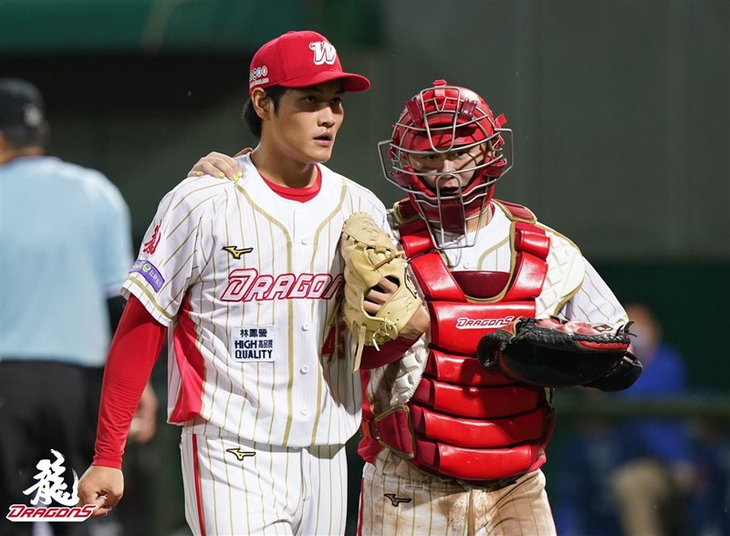 楊鈺翔(左)完成一軍初次先發登板。圖/味全龍隊提供