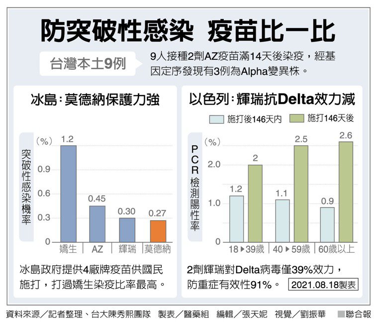 QA/打疫苗還是染疫? 7大重點看懂突破性感染 |2021.08.23 語音朗讀 941觀看次 字級 大 中 小 全台嚴防Delta變異株,國內民眾苦等第二劑疫苗,是否增加「突破性感染」的風險?「突破性感染」有沒有辦法預防?示意圖為台大醫院接種站民眾施打情形。 圖/資料照片 【本報台北訊】打了新冠疫苗還會不會感染新冠病毒?目前全球各地都有「突破性感染(Breakthrough infection)」病例,就是完整接種兩劑疫苗滿14天仍然確診,稱為「突破性感染」。全台嚴防Delta變異株,國內民眾苦等第二劑疫苗,是否會增加「突破性感染」的風險?「突破性感染」有沒有辦法預防?聯合新聞元氣網整理目前對「突破性感染」的相關研究,提供七個重點提供參考。Q1:什麼是突破性感染?那一個疫苗品牌最常見?廣義來說,曾經施打疫苗卻發生確診,稱為「突破性感染」,根據美國CDC定義,針對BNT、莫德納、AZ疫苗接種二劑至少滿14日,仍發生感染事件,屬於突破性感染。指揮中心發言人莊人祥指出,國內以施打二劑疫苗滿14日後仍確診,就屬於突破性感染。近期,台電大樓確診女員工一度被認為是突破性感染,但她接種兩劑莫德納未滿14日確診,並不算突破性感染案例。指揮中心於8月18日公布,國內有9例打了AZ疫苗第二劑滿14日仍發生感染的案例。至於境外移入的例突破性感染病例,至8月21日累計19例,其中打BNT疫苗8例、AZ疫苗5例,嬌生和莫德納疫苗各3例。Q2:發生突破性感染,是因為疫苗不夠好嗎?台灣感染症醫學會理事、長庚兒童醫院兒童感染科醫師黃玉成指出,「所有的疫苗都沒辦法做到百分百,最好的新冠疫苗可達9成以上就已經非常很優秀。」他強調,「疫苗施打的目的有很多種,最好就是都不要有感染、次好就是感染後無症狀或輕症、再其次就是避開重症及死亡。」不能因為突破性感染就全盤否定疫苗效果。台大醫院家醫科主治醫師張皓翔也表示,疫苗並非百分之百,舉例來說,BNT疫苗打完兩劑後的保護力達90%,AZ疫苗也有70%,但剩下10%至30%的人仍可能感染,但兩種疫苗防止重症及死亡效果可達90%,接種仍是利大於弊。圖/資料照片Q3:突破性感染發生,是因為Delta變異株太強?張皓翔表示,主要擔心Delta變異株對於疫苗保護力出現威脅,使保護力從九成掉到八成或六成,進一步造成突破性感染。指揮中心醫療應變組副組長羅一鈞20日公布12例境外移入個案,皆感染Delta變異株,且有3例為突破性感染,他表示,Delta變異株確實對疫苗反應較弱,與突破性感染也有直接關係。黃玉成則指出,目前已知疫苗對Beta南非變異株的效果較差,但該病毒並非為國際主流變異株,感染人數不及Delta。國外報告顯示,並無直接證據證實Detla變異株會讓突破性感染增加,若要證實某變異株與突破性感染有關,必須進一步釐清確診日期、接種疫苗日期,並與符合突破性感染者一一基因定序,有其困難度。圖/資料照片Q4:哪些族群容易出現突破性感染?該怎麼辦?「有人因為因或體質就是對疫苗反應較差,例如臨床實驗中有人每周抽血觀察,其抗體效價就是比別人低,這一類族群就比較容易感染。」黃玉成舉例,以一般民眾接種B肝疫苗例,約有5至10%接種後沒有產生抗體,新冠疫苗也同樣類似的發現。針對抗體較低的族群,如因癌症需要化療者,其抗體效價也比常人低,這一類族群可能也要提高施打劑量或補打第三劑。Q5:相較未接種疫苗的確診者,突破性感染患者的病毒感染力較低還是較高?黃玉成指出,研究顯示,接種過一劑或二劑疫苗的人確診後,其病毒量跟其它確診者差不多。但臨床觀察發現,打過第一劑疫苗的人,感染後病毒量若降得很快,代表可傳染時間縮短,例如一般確診者可能要花一周時間,Ct值才會從20降至30,接種疫苗者可能只花三天,不只縮短傳染期,也能降低復陽機率,但這需要更多醫學數據及報告佐證。Q6:降級後突破性感染是否增加?如何避免?黃玉成指出,突破性感染的前提是感染者有打過疫苗,國內外降級後,隨著疫苗覆蓋率上升,突破性感染人數也增加。「如果疫苗保護力是95%,有5%人仍會感染,隨著接種人數變多,突破性感染人數也增加。」但美國突破性感染比率不到萬分之一,並不算高。國外疫情趨緩而解封,打疫苗的人也變多,看似「突破性感染」人數增加,但與疫情警戒降級無關。張皓翔表示,民眾打了疫苗後,自然希望回歸正常生活,若能做好更嚴謹的NPI(非藥物公衛防疫措施),如戴口罩、保持社交距離等,自然能降低感染的機會,突破性感染機率也會降低。但他強調,即便有零星突破性感染,「但打了疫苗後,減少重症死亡率,醫療量能可以負荷,對於疫情控制就相對樂觀。」Q7:還有哪些問題也會導致突破性感染?黃玉成指出,疫苗若保存不當,冷鏈運送不佳,造成疫苗效力降低,也可能進而造成突破性感染。他舉例,mRNA疫苗需要低溫保存,BNT疫苗要在-70度,莫德納也需要在-20度,AZ則2至8度即可。各國施打疫苗時,對於運送、保存、解凍、配送等過程,仍須嚴格把關。防突破性感染疫苗比一比。圖表/聯合新聞元氣網 前一篇文章 中央大學探索隊 成功執行北極圈研究任務 下一篇文章 入境帛琉須有完整疫苗接種證明 台帛泡泡則不受影響 熱門新聞 01【印象旅人】阿里山森鐵首航記2026.04.1102人口持續減少 今年新生兒恐跌破9萬 2026.04.1103螢光花泉季 卡比胖拉超療癒2026.04.1104鄭習會 鄭:兩岸和平制度化2026.04.1105【口腔健康攸關長壽】 張添皓:從齒啟動全身保