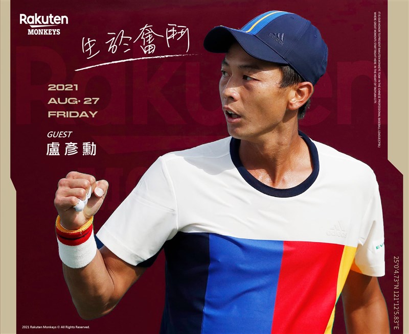 【記者曾博群綜合報導】男子網球好手盧彥勳將在8月27日(五)受邀到中華職棒樂天桃猿主場,擔任賽事開球貴賓,為中華職棒投出好球。中職下半季賽程將在明日展開,樂天桃猿要在主場迎戰統一獅隊,展開下半季首戰,也是前旅日好手陳冠宇中職初登板先發。