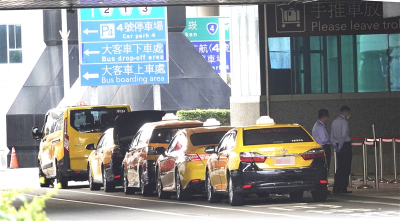 圖為桃園機場第二航廈防疫計程車隊車輛、人員待命載送入境旅客。圖/陳嘉寧
