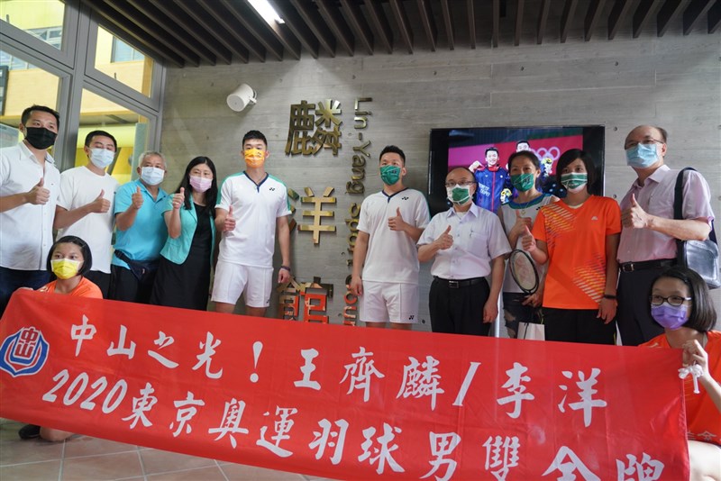 2020東京奧運榮獲羽球男子雙打金牌的北市中山國中傑出校友王齊麟、李洋返校參加,為表揚其優異的表現,校方特將星耀樓2樓綜合球場命名為「麟洋館」。圖/北市教育局提供