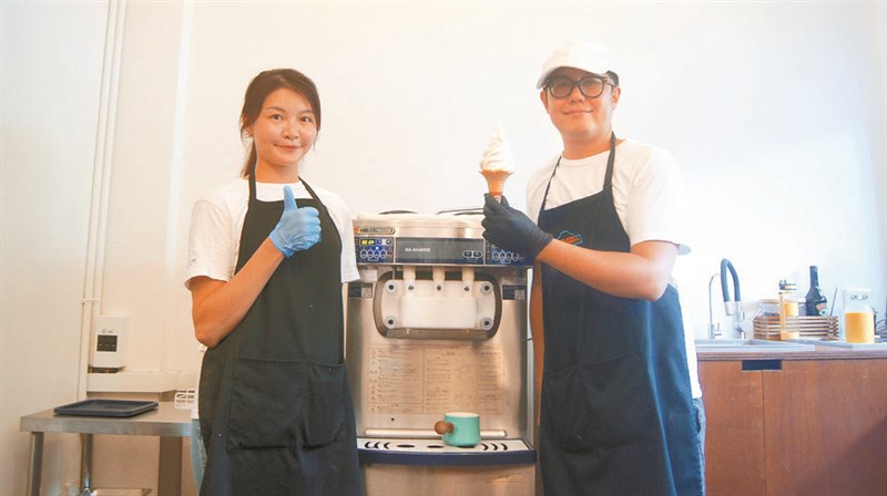 在彰化員林長大的洪維駿(右)去年回到家鄉,開了一間使用在地食材的霜淇淋專賣店。