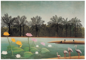 盧梭作品的題材,大都與森林曠野與茂鬱的樹林沼澤有關,主要來自於他青年時期,服役於軍中時到過墨西哥和南美等地的場景,濕熱而些許清朗的透明空氣,穿透時空原野,誘發出一種淨潔出塵的美麗夢境,很少人不為此夢境驚嘆和迷戀。