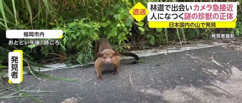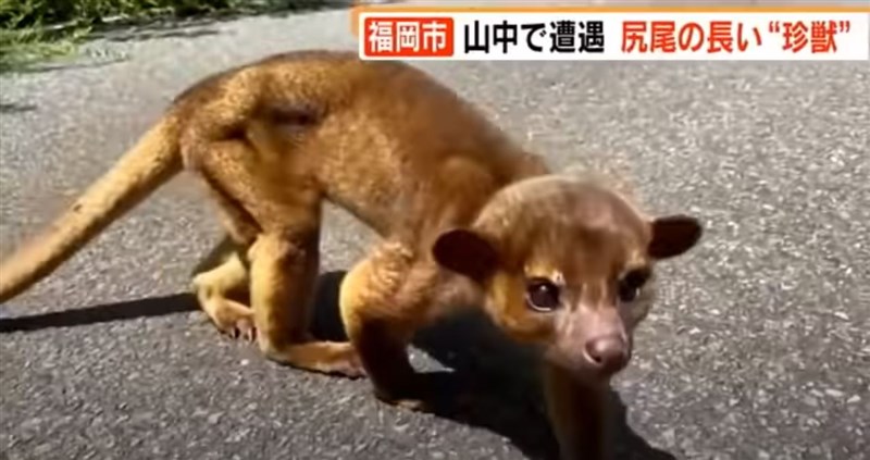 日本男子在山裡發現一隻長得像猴子的奇妙生物。圖/取自福岡TNC ニュースYoutube