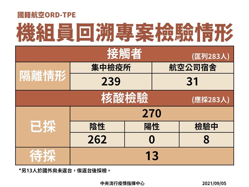 機師子學校逾300人採陰 陳時中:校園可控 |2021.09.05 語音朗讀 1641觀看次 字級 大 中 小 圖/指揮中心提供 【本報台北訊】長榮航空3名國籍機師突破性感染新冠病毒,其中一人的兒子也染疫。不過指揮中心指揮官陳時中表示,目前針對同班機執勤的案16119和案16120機師的匡列者,除原本的機師之子外,沒有新增陽性案例。陳時中表示,針對同班機執勤的機師匡列者,匡列315人,292人集中隔離、23人自主健康管理。315人皆已採檢,其中僅機師之子,案16122為陽性,其餘269人陰性,45人檢驗中。機師確診之子就讀高職,校園內一起用過教室的同學和同住家人,足跡接觸者匡列224人,目前皆為陰性。陳時中表示,校園情況很好,應該是可控。另針對機組員回溯專案,長榮航空14天內到過芝加哥的機組員匡列283人,集中檢疫有239人,航空宿舍31人,這283人除了13人在國外,262人陰性,8人檢驗中有結果會報告。圖/指揮中心提供 前一篇文章 低壓帶往台灣接近 10日帶來風雨 下一篇文章 BNT疫苗 高中生923開打 熱門新聞 01【研朱札記】《臺灣文學》的 誕生地──山水亭2026.01.2702聯合國示警 全球水資源破產2026.01.2203吃素好體力 霍諾德登頂101 2026.01.2604佛光山職員歲末聯誼 祈願和諧共生2026.01.2405【分享時刻】我如何從潑墨走回工筆2026.01.2206澤倫斯基瑞士演說 控俄飛彈含台灣零件 2026.01.2407【海闊天空】廢墟中重建 塵土之上的伊拉克2026.01.2408【文化遺產】世界最大石雕佛像──樂山大佛2026.01.2309金光明寺送暖 音樂饗宴12年不輟2026.01.2310人間佛教讀書會培訓 南非學員在地深耕2026.01.22 訂閱電子報 台北市 天氣預報 台灣一週天氣預報 相關報導 馬太鞍溪堰塞湖幾見底 降挖團隊撤離輝達星艦3.0 都市計畫變更通過嘉義山區步道 春季踏青首選跟著史努比 安全遊台中杉林溪 葉牡丹怒放天元宮聯名幾米 邀您一起賞櫻花