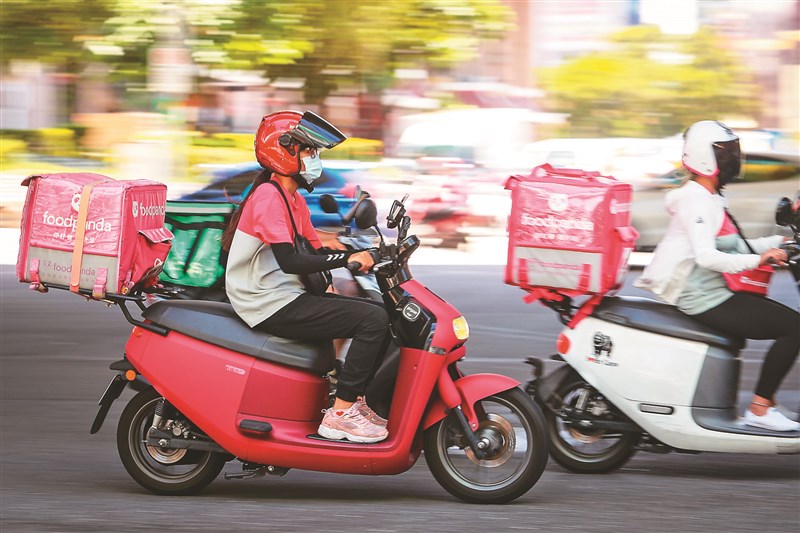 外送平台部分,只要能提供免上架費、行銷優惠等,也都可納入5倍券使用範疇。圖為外送員送餐情景。圖/中央社