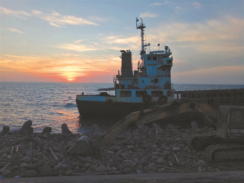 幾年前夏天,有一場強烈的颱風過境。風雨過後,爸爸告訴我們,台南家鄉的海邊有艘貨輪,從海上被吹了過來,之後便一直滯留在海岸,動彈不得。