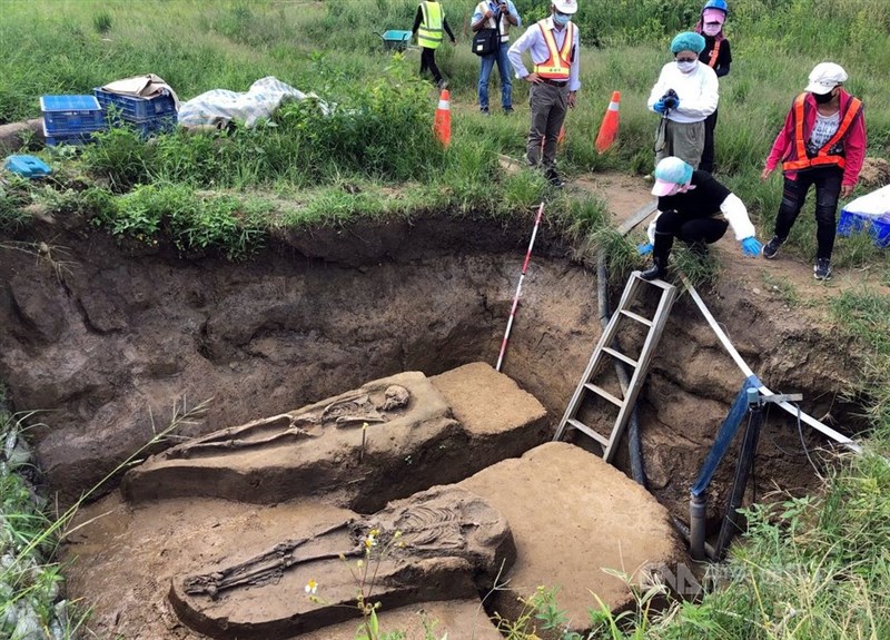 【中央社嘉義市報導】嘉義市鐵路高架化工程經過台斗坑遺址,今年挖到2具至今逾2500年前先人,遺骸已由南科考古館暫存維護。遺骸雙手反揹後方,為俯身直肢葬法,在台南烏山頭遺址也有同樣葬式。
