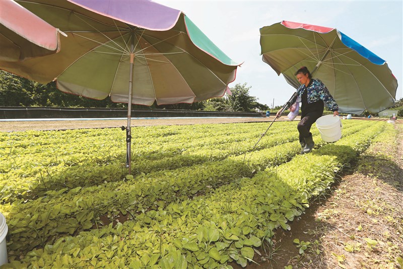 擔心燦樹強颱帶來強風豪雨,高雄梓官菜農昨冒著大太陽搶收,希望減少一點損失。圖/劉學聖