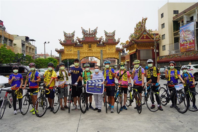 為宣傳屏東迎王平安祭典,一群青年組隊騎單車熱血環島,同時為疫情祈福。圖/大鵬灣觀光產業聯盟提供。