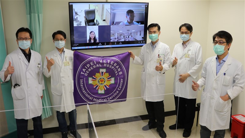 北榮新冠病毒專家團隊,與越南震興醫院醫療人員,遠距視訊合影。圖/台北榮總提供