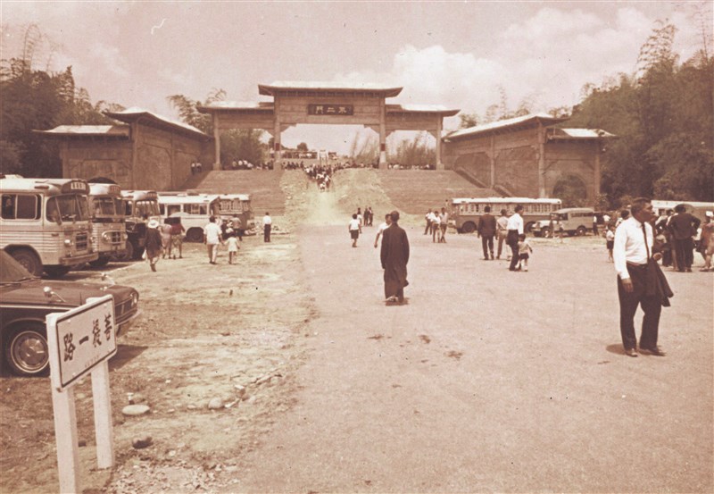 佛光山開山時期的不二門與後方興建中的朝山會舘。圖/資料照片