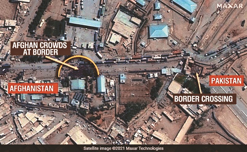 印度媒體也報導,阿富汗與巴基斯坦接壤的邊境城鎮史賓波達克查曼關卡的衛星畫面,6日拍攝的畫面顯示,查曼關卡人群密密麻麻,報導指多達數千人,他們急著想要離開阿富汗。