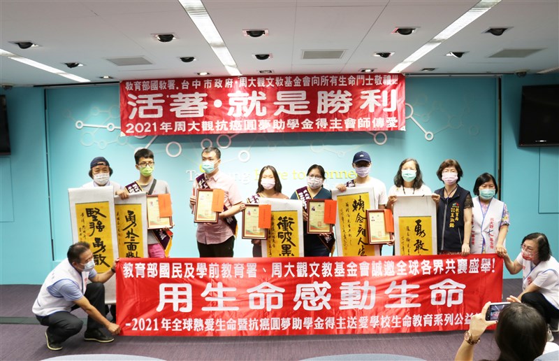 日前抗癌圓夢助學金得主代表會師,即使疫情使生活陷入困頓,他們依然願意挺身,用生命感動生命。圖/周大觀基金會提供