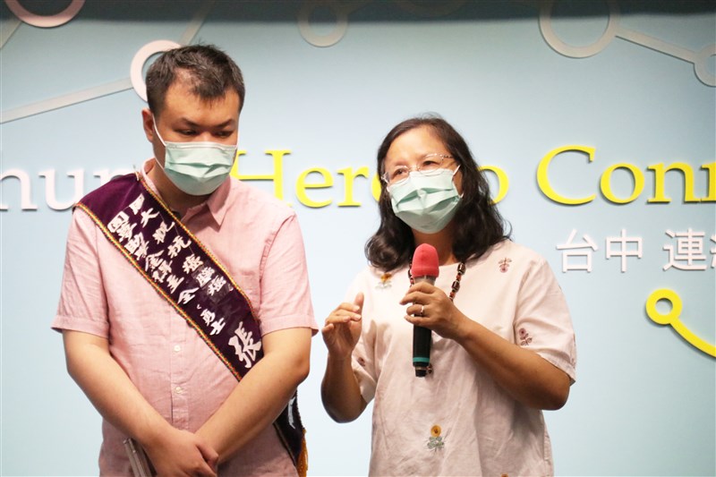 廖妙圓(右)帶大兒子張友綸出席基金會活動,陳述他們的困境和分享堅強的一面。圖/周大觀基金會提供