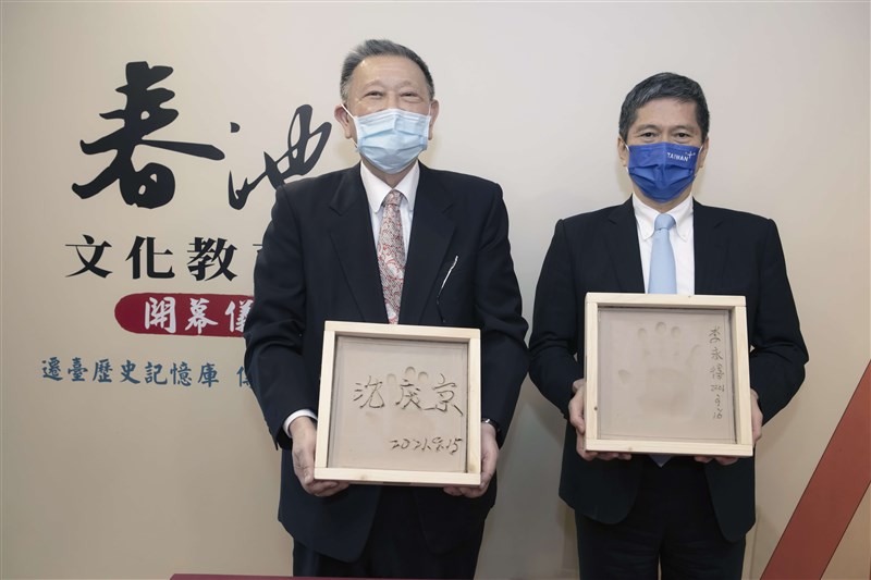 沈春池文教基金會創辦人沈慶京(左)、文化部長李永得(右)共同見證春池文教館落成。圖/沈春池文教基金會提供