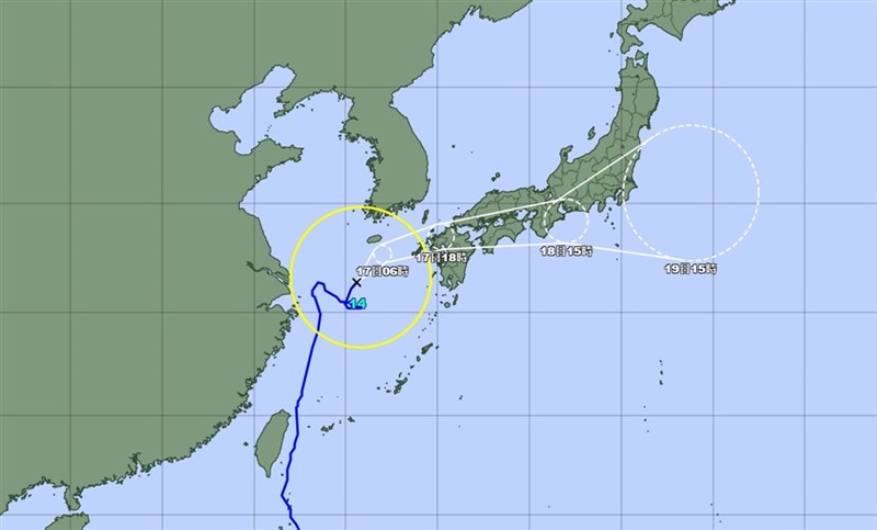 颱風璨樹預料17日將接近西日本並可能登陸,對宮崎縣等地區帶來大雨。圖/日本氣象廳網頁jma.go.jp