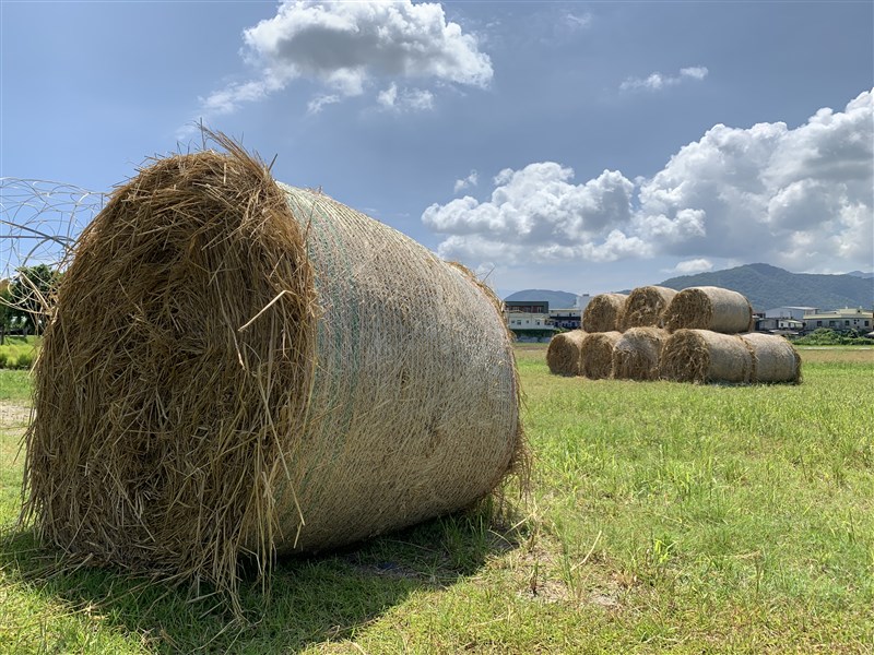 好拍夯點不只超大月球,冬山火車站「台版羊角村」附近,有著4.5公頃寬闊綠草地,冬山鄉公所8月底特別擺放30個直徑1.2公尺大的稻草捲,營造出塞外風光之感。