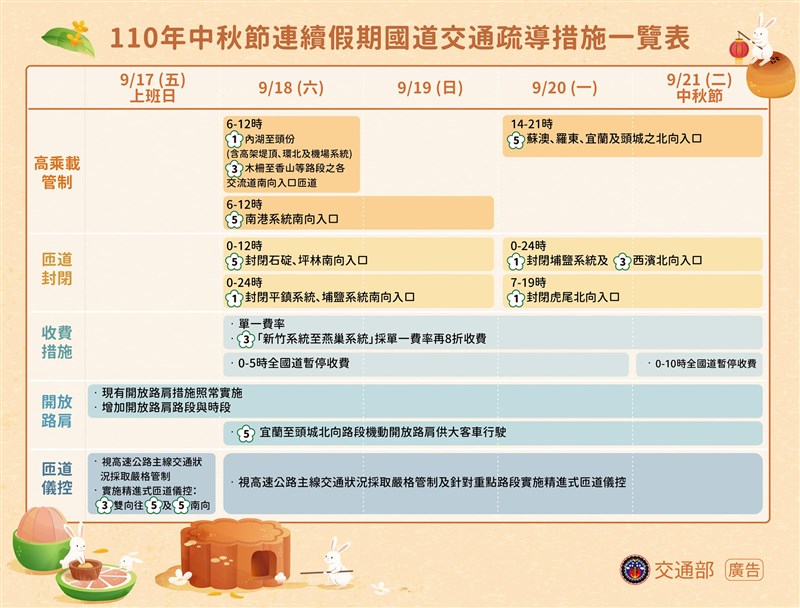 國1紅爆路段多 8大風景恐湧進車潮 |2021.09.19 語音朗讀 1191觀看次 字級 大 中 小 中秋連假第2天,國3上午湧現出遊車潮。圖/中央社 【本報台北訊】今天是中秋連續假期第2天,預估有大量出遊車潮湧現,今天上午國道車流目前多數都集中在國道1號,多個路段呈現「紅爆」。其中彰化系統—彰化最塞,時速只有27公里,另外國1也有多個路段時速都在40公里以下。根據高公局網站路況顯示,今天上午9時30分左右,國道「滿江紅」狀況都集中在國1,其中彰化系統—彰化時速僅27公里,汐止系統—汐止、竹北—新竹時速都僅33公里,湖口服務區—竹北、內湖—東湖、東湖—高架汐止端時速都不到40公里。另外,國3崁頂—南州也特別壅塞,時速僅30公里。彰化系統—彰化車流量多。圖/取自國道監控官網高公局提醒,今日上午壅塞路段,出現在國1南向楊梅—新竹系統、彰化系統—埔鹽系統、北向圓山—大華系統、國3南向三鶯—關西、烏日—霧峰系統、國5南向南港系統—坪林等路段,建議南向用路人於下午時段出發、北向用路人於上午時段出發。公路總局預計,今天各大風景區將湧現觀光人潮,包含台2線福隆—瑞濱及萬里—大武崙路段、台2線及台2乙線關渡—淡水路段、台3線及台7線大溪—慈湖路段、台9線礁溪路段、台14甲線清境路段、台21線日月潭周邊、台17線水底寮路段、台26線墾丁路段等;其中台14甲線的清境農場目前停車場已滿,建議要前往的遊客可先至其他風景區遊玩後再前往。圖/取自交通部臉書 前一篇文章 自費驗抗體惹爭議 22日開會訂指引 下一篇文章 太平洋臀紋粉介殼蟲 分布亞洲多國 熱門新聞 01【遨遊藝事】巴黎 黛瑪兄弟茶館(Dammann Frères)2026.02.0602極樂寺彩繪燈籠 三好理念廣傳校園2026.02.0403兩岸新聞營師生 認識人間佛教2026.02.0504佛教藝文本土化 昆士蘭美術館團隊訪中天寺2026.02.0505南韓城南高中、普中 棒球隊切磋球技2026.02.040630冊佛教徒必讀經典 台北書展亮相2026.02.0407印尼佛教學院開學 培育國際弘法僧才2026.02.0508社區學童岡山講堂行春 學三好迎接午馬年2026.02.0509向前有路 光明在望2026.02.0510立春養生疏肝理氣 飲食調養少酸多甘2026.02.04 訂閱電子報 台北市 天氣預報 台灣一週天氣預報 相關報導 枋寮.慢活春節加成獎勵 北市診所除夕開診5成太平山遊樂區 銀色童話世界太平山飄冰霰 周三仍有低溫卓揆:宜蘭鐵路高架化 春節前核定美濃花海迎春 番茄公仔吸睛