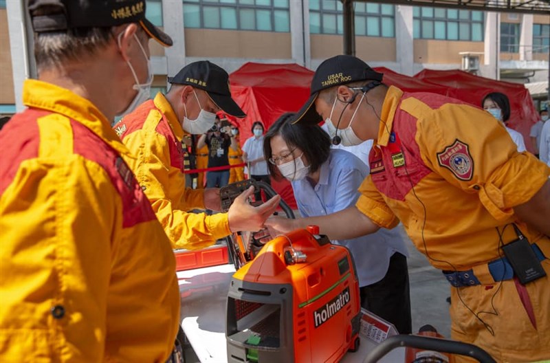 日前蔡英文到南投竹山的消防署訓練中心視察消防及搜救犬演練,深有感觸,指出:「921震災後的22年來,我們記取教訓,持續強化基礎設施,也善用科技來提升面對災害時的韌性,包括發送細胞簡訊,盡可能第一時間、甚至預先提醒大家,增加地震、豪雨、土石流等災害的緊急應變時間;透過防災教育和防災演習,從家庭、學校到各類公共場所,都要習慣關於警報及避難、疏散的反應,也鼓勵大家平時就要準備好避難包;增補第一線防救災人力,更新裝備、充實國家級訓練中心的軟硬體設施,並關照第一線同仁的身心健康,全面提升防救災的能量。」