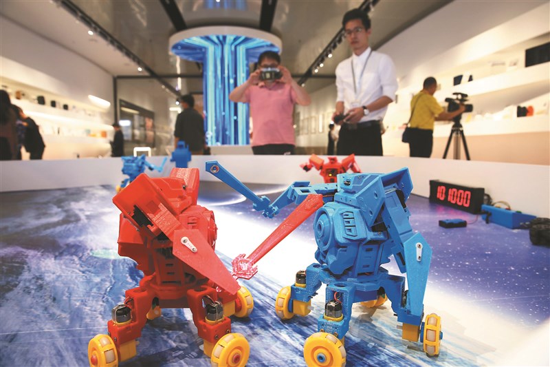 大陸化工、有色金屬工業、鋼鐵、機械設備等傳統行業,未來投資將由資源驅動變創新驅動。圖為廣東工業設計城創新科技館,工作人員展示機器人「速鬥無人區」。圖/資料照片