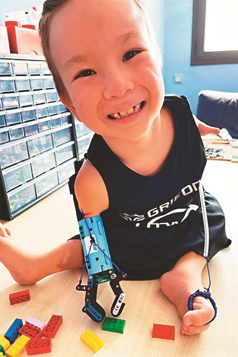 首創樂高義肢 為病童打造手臂 |2021.09.22 語音朗讀 1579觀看次 字級 大 中 小 阿吉拉爾(右)與貝克努開心「擊掌」。圖/取自金氏紀錄官網 【本報綜合外電報導】歐洲國家安道爾一名青年阿吉拉爾(David Aguilar)因波蘭氏症候群(Poland Syndrome),天生沒有右手前臂,但他十八歲便為自己設計出世界上第一個具功能性的樂高義肢,二○一七年獲得金氏世界紀錄認證,近來首度為他人打造義肢,令一名四肢發育不全的男童重獲新生。金氏世界紀錄網站報導,波蘭氏症候群不但使阿吉拉爾沒有右前臂,也阻止他的右胸肌發展,但他一直希望,能在鏡子裡看到自己的模樣和一般人擁有二隻手。阿吉拉爾從九歲開始設計義肢,並決定用自己最熟悉的材料來製作,「樂高是我小時候第一個玩具,讓人覺得可以建造無限多的東西,想像力是唯一的限制」。圖/取自金氏紀錄官網歷經5代改良 不需肌肉控制十八歲時,阿吉拉爾以樂高直升機套組積木設計出純機械式義肢手臂,並以漫威動畫英雄鋼鐵人的鎧甲名稱,將其命名為MK-I(Mark 1,馬克一號),有一個可活動的肘關節及用來撿起物品的抓取器,透過彎曲肘部來控制,阿吉拉爾說:「我的第一個模型得用肌肉控制,長時間使用會有點痛,好處是MK-I在做伏地挺身時,能夠支撐我的重量!」經過許多改良,現年二十二歲的阿吉拉爾研發出最新型號MK-V是電動的,配備一個程式控制器,能夠接收與發送指令,以殘臂進行細微的動作來控制五根手指,他解釋:「這是我的模型中最舒服的義肢,不需要靠肌肉提起什麼東西,伺服馬達會幫我做到。」一般義肢價格高昂,保養及零件更換都要價不菲,令許多人卻步。身為生物工程學系學生,阿吉拉爾目標是打造出全世界所有人都能負擔得起的義肢。法國一對夫妻聽聞他獲得金氏世界紀錄頭銜後,透過電子郵件聯絡他,希望阿吉拉爾能為他們的兒子貝克努(Beknur)製作樂高義肢,阿吉拉爾馬上著手行動。圖/取自金氏紀錄官網免費提供教學 盼幫助更多人八歲的貝克努患有海豹肢症,出生便沒有手臂與膝蓋。阿吉拉爾了解貝克努的狀況後,決定為他打造雙手,於是貝克努和母親從法國跋涉一千三百公里前往安道爾,裝上阿吉拉爾為他製作的「MK─貝克努」(MK-Beknur)樂高手臂。貝克努過沒多久就學會如何控制,已經可以撿拾物品、使用平板電腦,且義肢成本僅十五歐元(約新台幣四百八十九元)。阿吉拉爾說明:「貝克努的案例中,當我看見他第一次移動樂高義肢時,感到巨大的喜悅與幸福。他笑得太開心了,很有感染力!如果我有幸能夠繼續製作這些義肢,可以幫助更多孩子和世界各地的人們。」 前一篇文章 防遊客侵入 檀香山要拆海庫階梯 下一篇文章 亂入球賽叼走球 狗狗獲頒MVP 熱門新聞 01【遨遊藝事】 威尼斯沉船書店2025.12.2902【獻給動物朋友的詩】 最可愛的動物詩路2025.12.2503以法相聚 佛光山員義工歲末聯誼2025.12.2404【寰宇采風】京都最溫柔的秋色:紅葉永觀堂2025.12.2605台北道場歲末聯誼 感謝義工同行菩薩道2025.12.2706社論--悲憐天下父母心2025.12.2507南瓜籽紅豆黑芝麻 含天然助眠營養素2025.12.2608南天寺英文佛學營 佛青培養內在力量2025.12.2409【中醫專欄】 中醫防失智之道2025.12.2710奧斯汀佛光人 感謝警消守護2025.12.24 訂閱電子報 台北市 天氣預報 台灣一週天氣預報 相關報導 颶風中愛貓失蹤 443天後被尋回曲譜轉成指令 機器人樂團演奏街友守護6浪浪 挨餓也要餵飽狗兒2好友租地採礦 挖到15克拉巨鑽羅馬噴泉要收費 抑制過度觀光無尾熊迷路 被救上公車抱緊扶手