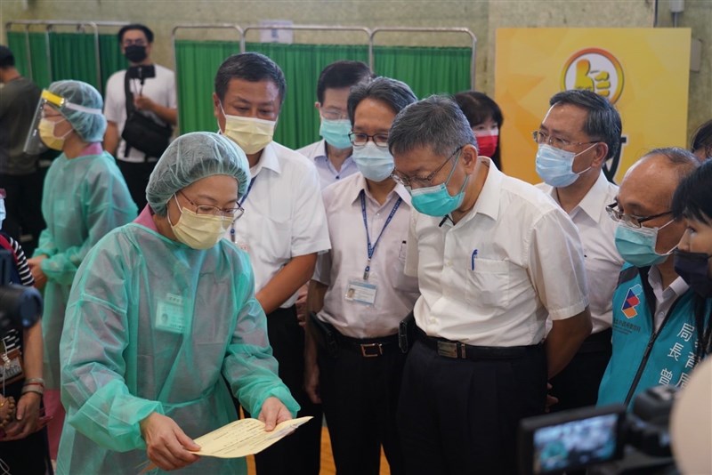 台北市長柯文哲一早即至育成高中視導學生BNT疫苗施打情形,並提醒同學乖乖坐著等待疫苗,如有身體不適可請三天疫苗假,回到家可用台北酷課雲進行線上課程。醫護人員在接種前貼心詢問同學「有沒有吃早餐」,現場也播放輕鬆音樂讓學生放鬆,避免暈針。