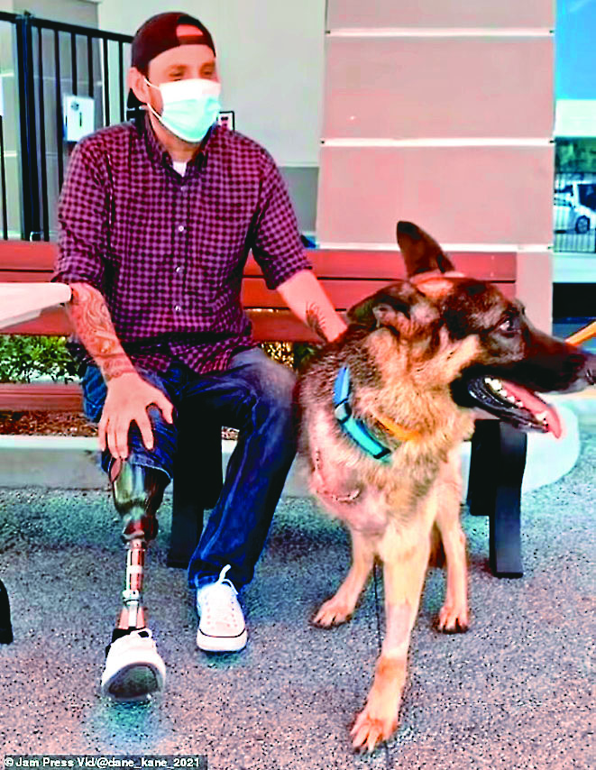 【本報綜合外電報導】美國四十二歲退伍軍人歐洛可(Dane Orozco)五年前傷重截肢後度過一段沮喪的歲月,但他在動物收容所遇見同樣截肢的狗狗「肯恩」(Kane)後,立刻愛上牠並獲得力量。歐洛可說,當時知道自己注定要帶這隻狗回家。