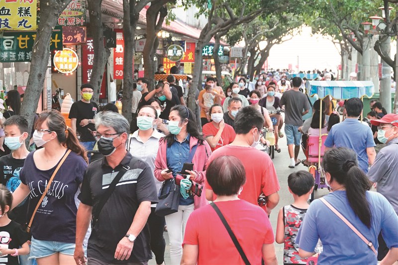陳時中說,疫情警戒全面降為1級,要有更嚴謹考慮。圖為到八里渡船頭老街商圈遊客,都有依防疫規定戴上口罩。圖/資料照片