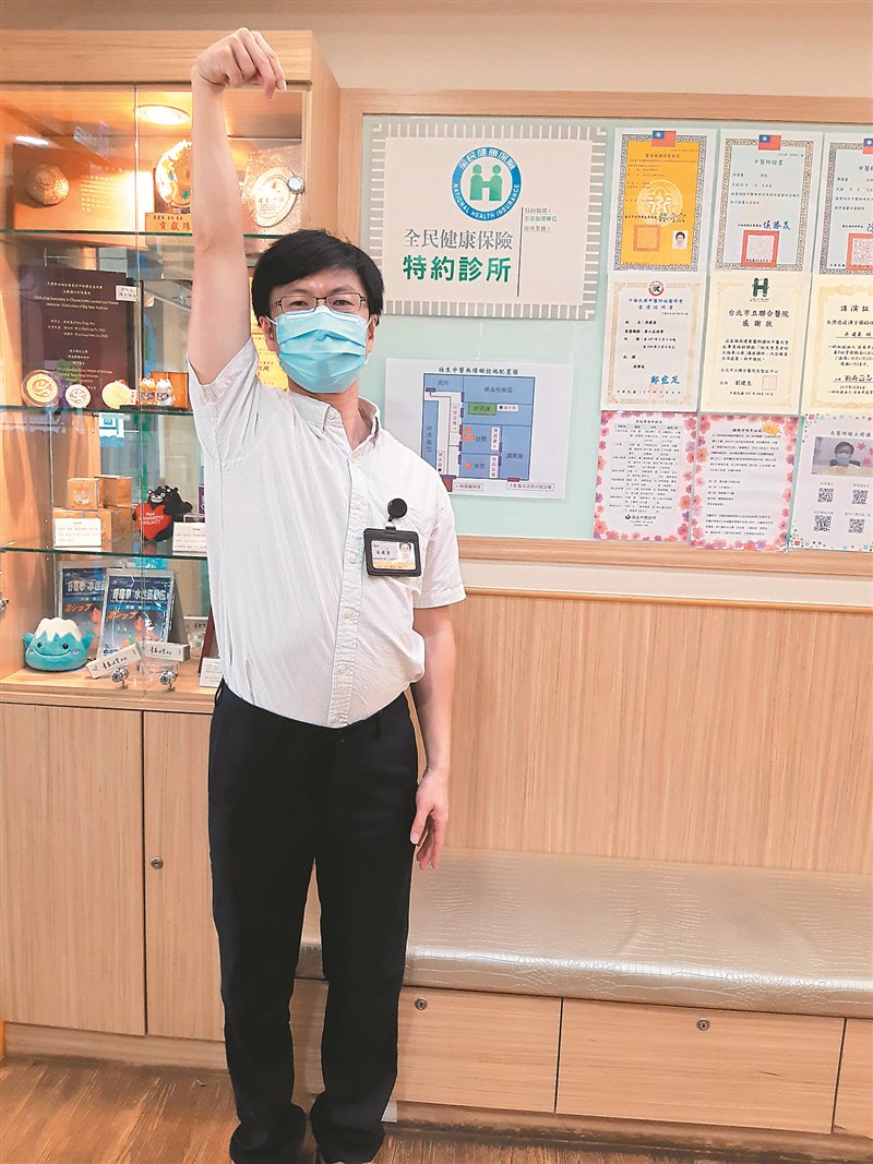 ◎動作:右手捏成鳥嘴狀,由身體前方旋轉上舉伸直,從右側方放下;換左手捏成鳥嘴狀,由身體前方旋轉上舉伸直,再從左側方放下;如此左右交替練習。圖/吳建東中醫師