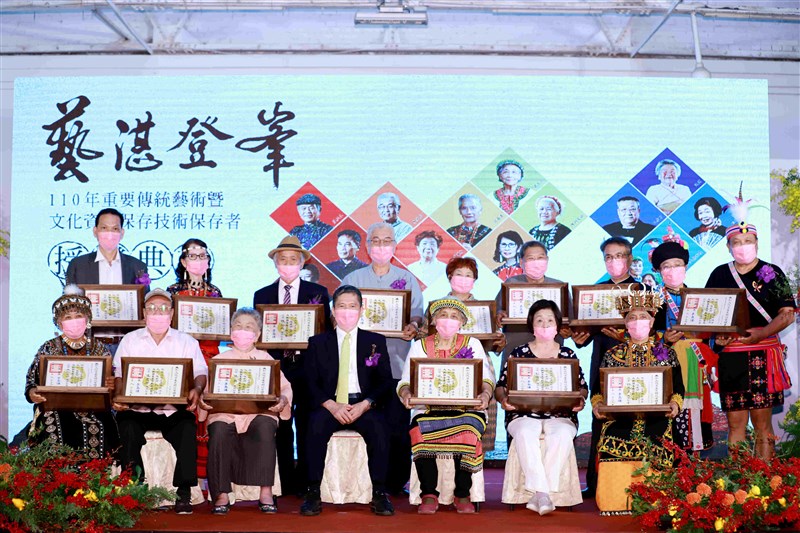 文化部2021年認定重要傳統表演藝術「恆春民謠」陳英、「亂彈戲」王慶芳、彭繡靜、「阿美族馬蘭Macacadaay」杵音文化藝術團;重要傳統工藝「噶瑪蘭族ni tenunan tu benina香蕉絲織布」嚴玉英、「排灣族Kinavatjesan傳統刺繡」陳利友妹、「排灣族tjemenun傳統織布」許春美、「賽德克族Gaya tminun傳統織布」張鳳英、「泥塑」杜牧河、「剪黏」陳三火、「漆工藝」黃麗淑、「玉雕」黃福壽、「傳統木雕」蔡德太,以及重要文化資產保存技術「製鼓技術」王錫坤等人間國寶,代表國家對文化資產的重視。