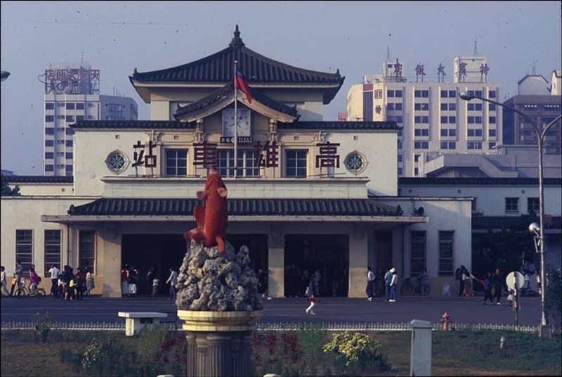 高雄火車站老建物重回城市舞台,站前「紅鯉魚」裝置藝術也保留完好,待周邊景觀工程就緒,就會讓「紅鯉魚」風光回家。圖/翻攝自康裕成臉書