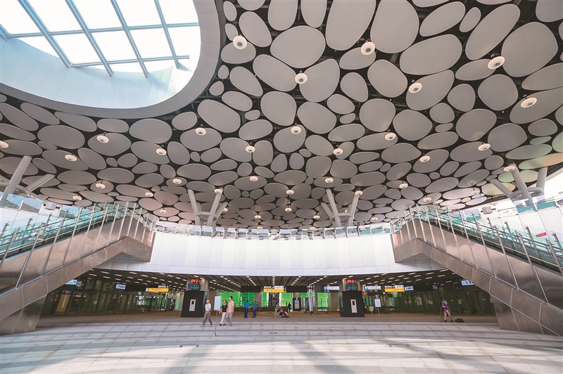 高雄新車站亮點是採綠色工法的天棚,營造出涼爽舒適的半戶外空間。圖/交通部鐵道局提供