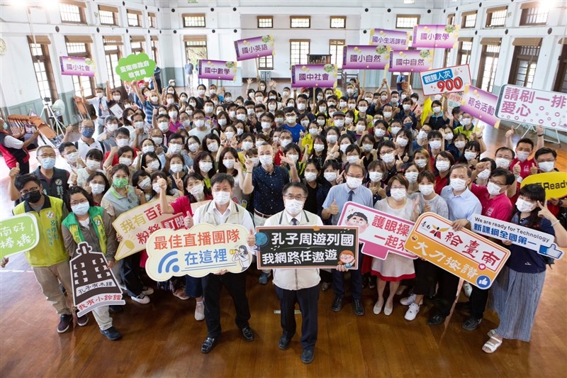 台南線上直播教學國家隊參與教師,透過網平台,進行直播教學公開授課,讓台南成為全國停課不停學的典範。圖/南市教育局提供