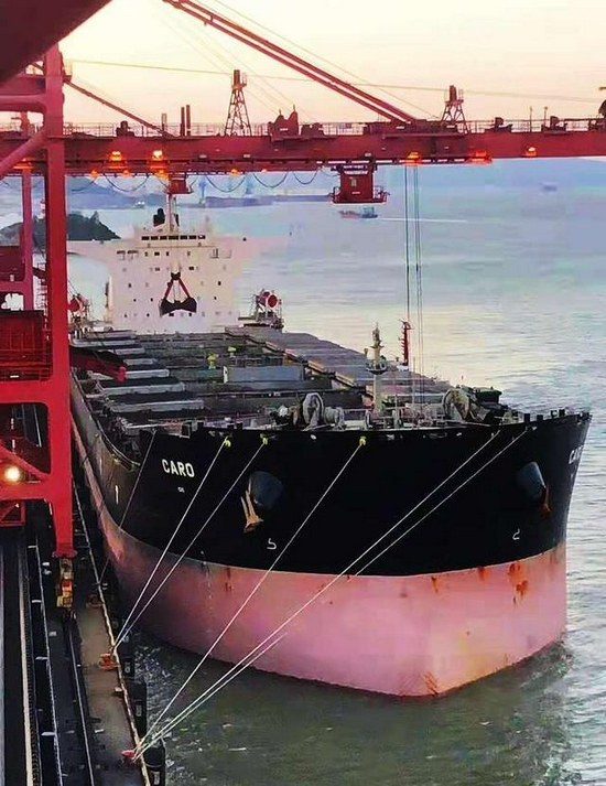 據了解,這批13.6萬噸的高熱值優質哈薩克煤,是浙能集團所屬富興燃料公司採購到六橫煤炭中轉碼頭的,裝載這批煤炭的MV CARO號(卡羅)船在海上航行了30天,航行8501海里(約15700公里)。
