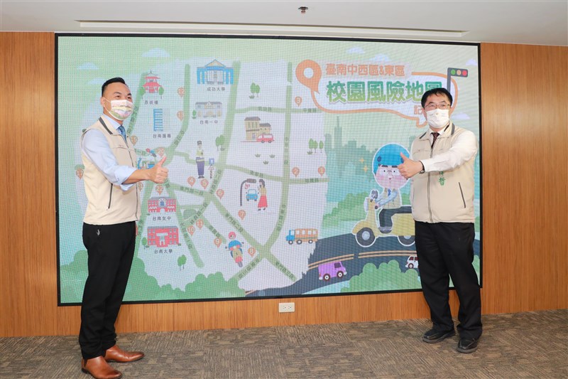 台南市交通局與陽明交通大學等單位攜手合作,檢視成功大學、台南大學、台南護專、南一中、南女中等5校的校園周邊道路風險。透過產、官、學三方合作,結合大數據及用路人習性,以圖像化方式,製作淺顯易懂的校園交通事故風險地圖、海報,讓年輕學子與用路者建立安全概念,將道路交通風險降到最低。